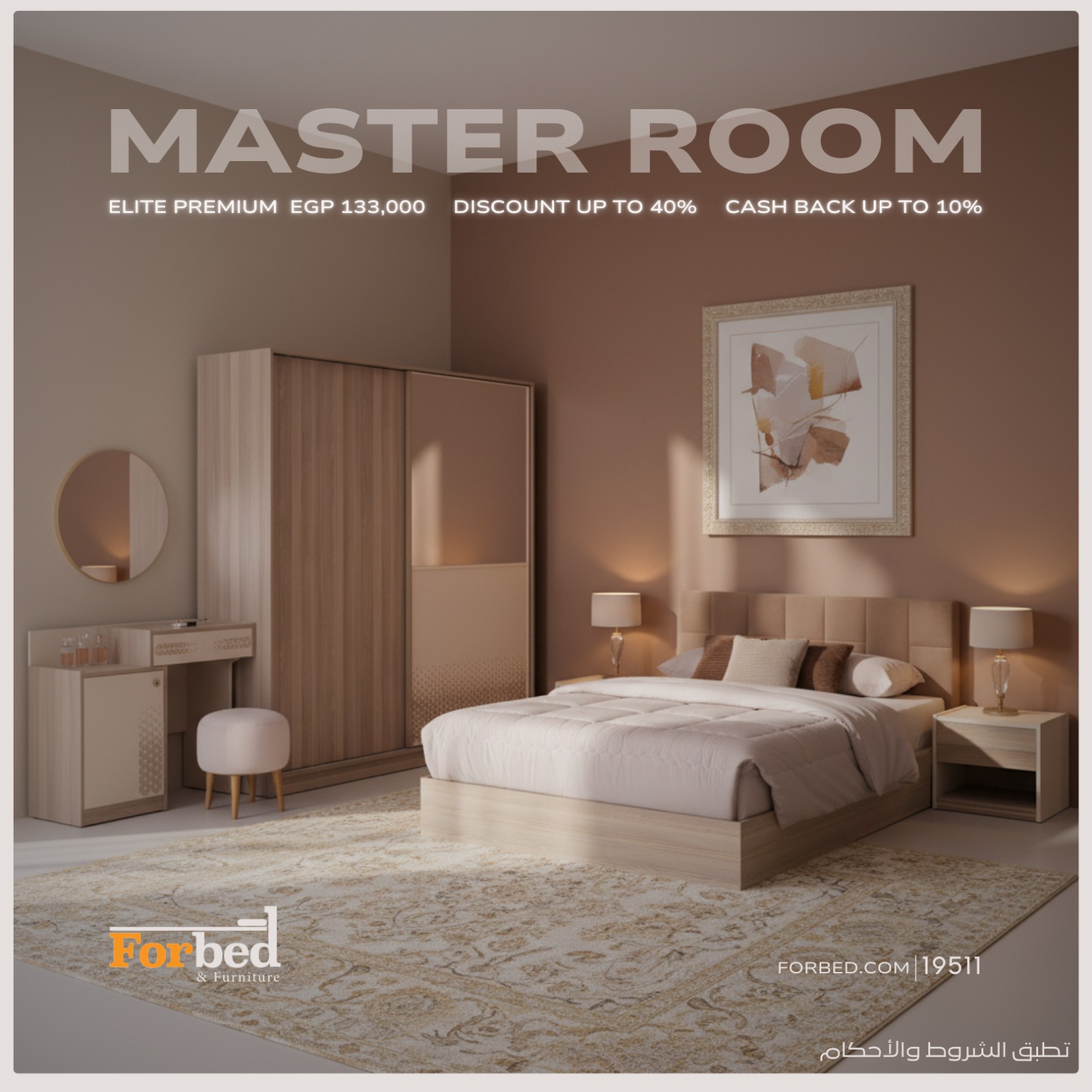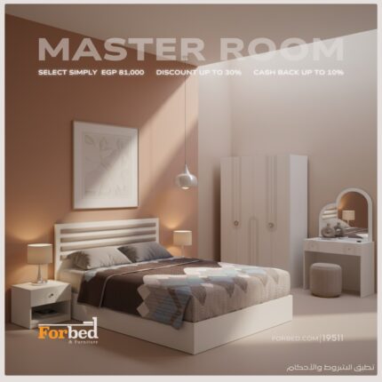 مكونات: سرير – دولاب – 1 كومود – مكتب